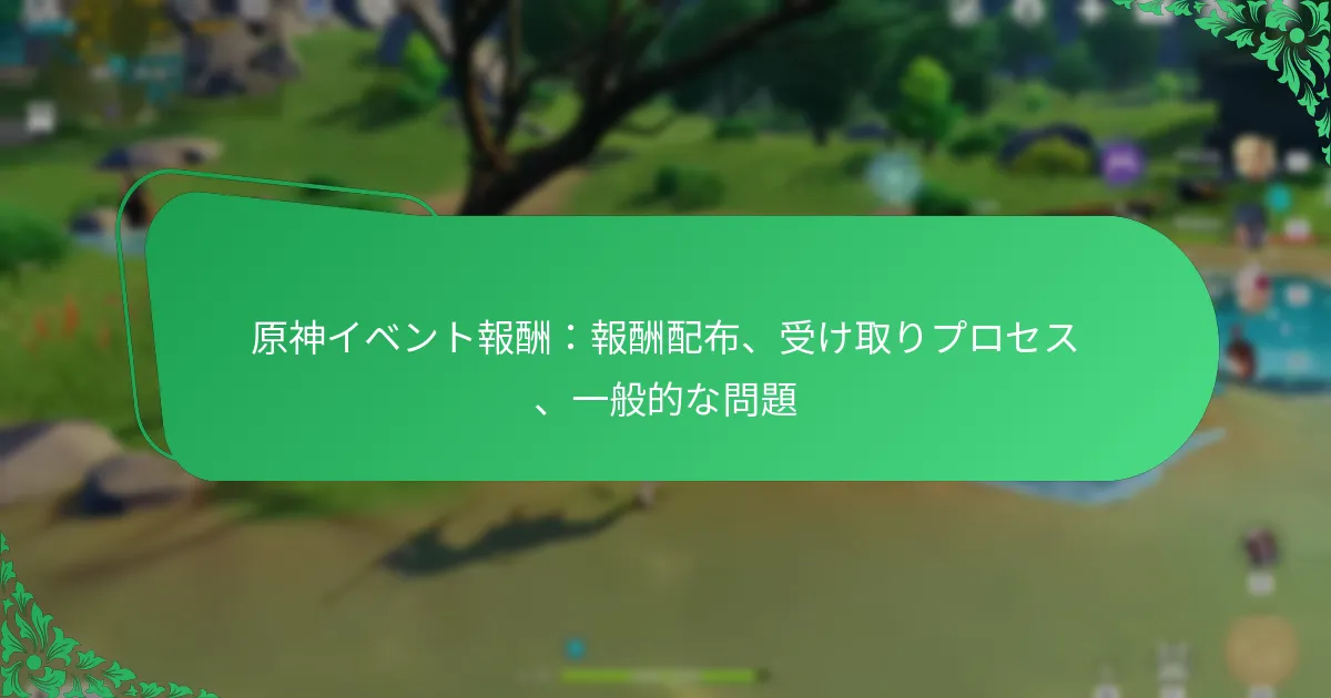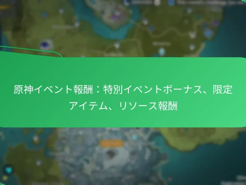 原神のイベントで報酬を得るためには、プレイヤーは特定の基準を満たす必要があります。これには、クエストの完了、特定のスコアの達成、または期間限定のチャレンジへの参加が含まれる場合があります。各イベントには、プレイヤーが満たす必要のある独自の要件があるかもしれません。