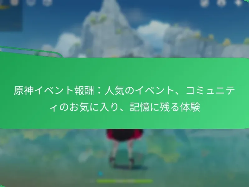 原神のイベント報酬の受け取り体験を向上させるために、プレイヤーはリマインダーを設定し、コミュニティリソースを活用するなどの効果的な戦略を実施するべきです。これらのアプローチは、タイムリーな受け取りを確保し、イベント参加の利益を最大化するのに役立ちます。