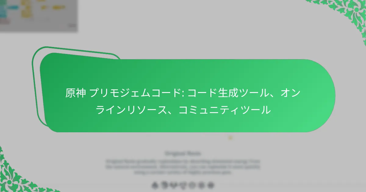 いくつかのコード生成ツールが原神プレイヤーの間で人気を集めています。これらには、ユーザーがプラモグemコードを迅速かつ簡単に生成できるウェブサイトやアプリケーションが含まれます。注目すべきツールには、CodeGen、Genshin Codes Hub、Primogem Generator Proがあり、それぞれユーザーのニーズに合わせたユニークな機能を提供しています。