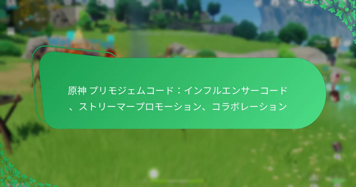 原神のインフルエンサーコードを見つけるには、さまざまなプラットフォームでプロモーションコードを共有する人気のコンテンツクリエイターをフォローすることが必要です。これらのコードは、プレイヤーに貴重なゲーム内通貨を提供し、ゲーム体験を向上させます。