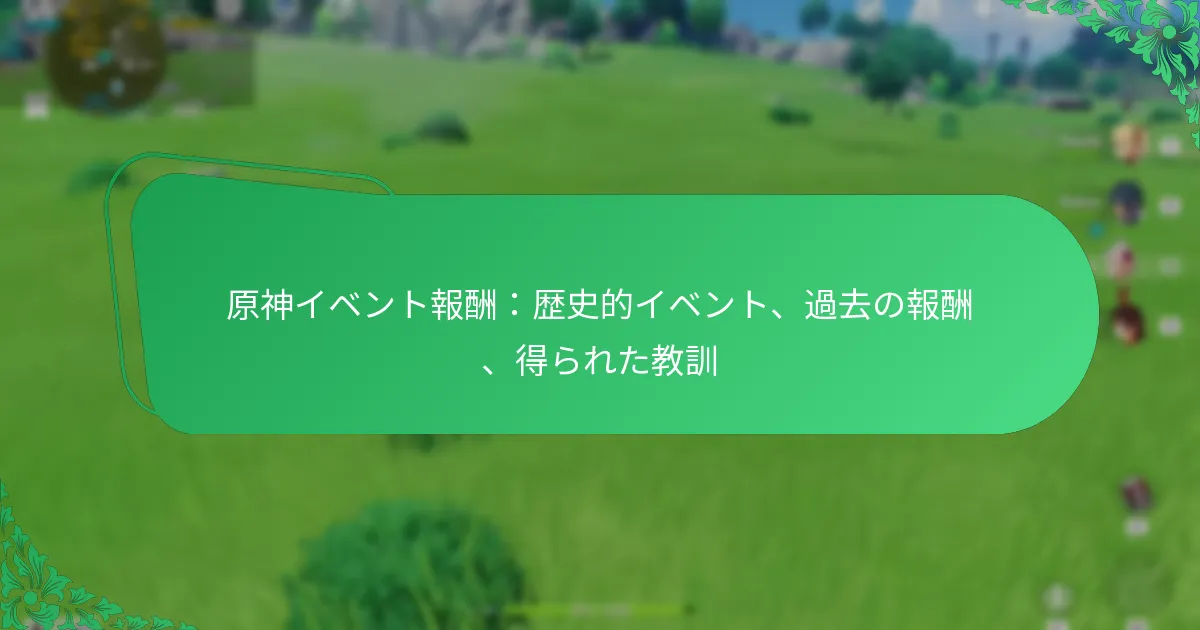 原神は、プレイヤーにユニークな報酬を提供することでゲーム体験を豊かにするさまざまな歴史的イベントを提供しています。これらのイベントは、重要な物語の展開を反映するだけでなく、コミュニティの関与を促進し、プレイヤーが積極的に参加することを奨励します。イベントのメカニクスを理解し、ゲームプレイを計画することで、プレイヤーは報酬を最大化し、ゲーム全体の体験を向上させることができます。 原神のイベント報酬に関連する歴史的イベントとは? 原神には、プレイヤーにユニークな報酬を提供するさまざまな歴史的イベントがあり、ゲーム体験を向上させています。これらのイベントは、しばしば重要な物語のアークを反映し、コミュニティを巻き込むことで、ゲームプレイや報酬の進化するパターンを生み出します。 主要な歴史的イベントの概要 原神の主要な歴史的イベントには、季節の祭り、キャラクターのストーリーライン、世界のアップデートが含まれます。各イベントは通常、新しい挑戦と報酬を導入し、プレイヤーが積極的に参加することを奨励します。ランタン祭りや風花祭りのようなイベントは、ゲーム内の伝承や文化的テーマを祝う定番となっています。 これらのイベントは報酬を提供するだけでなく、プレイヤーがゲームの豊かな世界を探索し、キャラクターと交流する機会を創出します。これらのイベントのデザインは、プレイヤーのフィードバックやコミュニティの関与を反映しており、時間とともに魅力を増しています。 ゲームの物語におけるイベントの重要性 原神のイベントは、ゲームの全体的な物語と深く結びついています。これらのイベントは、バックストーリーの要素、キャラクターの成長、そしてテイワットの理解を深める伝承を明らかにします。たとえば、アーコンのクエストは、メインストーリーを拡張する季節のイベントによって補完されます。 これらのイベントに参加することで、プレイヤーはさまざまなキャラクターの動機や歴史についての洞察を得て、ゲームへの感情的な投資を高めます。この物語の重要性は、プレイヤーの興味を維持し、ゲームの世界を探索することを奨励します。 過去のイベントのコミュニティへの影響 過去のイベントに対するコミュニティの反応は、原神のイベント構造の未来を形作ってきました。プレイヤーはしばしばフォーラムやソーシャルメディアで自分の経験、戦略、報酬を共有し、コミュニティの感覚を育んでいます。この相互作用は、プレイヤーがイベント参加を最大化するためのヒントやコツを交換する協力的な雰囲気を生み出しました。 さらに、特定のイベントの成功は、開発者がこれらの形式を繰り返したり進化させたりするきっかけとなり、コミュニティの好みが考慮されるようになっています。プレイヤーからのフィードバックは、イベントのメカニクスや報酬システムを洗練させる上で重要な役割を果たしています。 イベントとその報酬のタイムライン イベント名 日付 報酬 ランタン祭り 2021年1月 プラモグems、璃月テーマのアイテム 風花祭り 2021年3月 キャラクターバナー、イベント通貨 サマーアイランドアドベンチャー 2021年7月 限定スキン、ゲーム内通貨