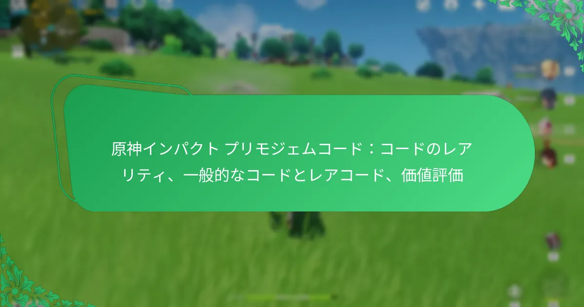 原神のプラモグエムコードは、プレイヤーがプラモグエム、つまり購入に必要なゲーム内通貨と引き換えられる英数字のコードです。これらのコードは希少性が異なり、一般的なコードは頻繁にリリースされて控えめな報酬を提供する一方、希少なコードはより大きな利益をもたらしますが、入手できる頻度は低くなります。これらのコードの違いを理解することで、プレイヤーはゲーム体験とリソース管理を最大限に活用できます。 原神のプラモグエムコードとは? 原神のプラモグエムコードは、プレイヤーがプラモグエム、つまりさまざまな購入に使用されるゲーム内通貨と引き換えられる特別な英数字のコードです。これらのコードは希少性や価値が異なり、ゲーム体験を向上させたいプレイヤーにとって重要な意味を持ちます。 プラモグエムコードの定義と目的 プラモグエムコードは、原神の開発者によってリリースされるプロモーションコードで、通常はイベントや特別な発表の際に提供されます。主な目的は、プレイヤーにプラモグエムを報酬として提供することで、これはガチャシステムを通じて新しいキャラクターや武器を獲得するために必要です。 これらのコードは、コミュニティを活性化し、イベントへのプレイヤー参加を促すためのマーケティングツールとして機能します。無料のプラモグエムを提供することで、開発者はプレイヤーの満足度と定着率を向上させることを目指しています。 原神におけるプラモグエムコードの機能 プラモグエムコードを引き換えるには、プレイヤーは公式の原神ウェブサイトにアクセスするか、ゲーム内メニューを使用する必要があります。そこに到達したら、指定されたフィールドにコードを入力し、対応するプラモグエムがアカウントに追加されます。 コードは提供されるプラモグエムの数に応じて異なり、少量を提供するものもあれば、より多くのプラモグエムを付与するものもあります。一般的に、一般的なコードは数十のプラモグエムを提供することが多く、希少なコードは数百のプラモグエムを提供することがあります。 プレイヤーにとってのプラモグエムコードの重要性 プラモグエムコードは、キャラクターのアップグレードや引き当てに必要なリソースを提供することで、プレイヤーのゲームプレイに直接影響を与えるため、重要な価値を持っています。多くのプレイヤーにとって、これらの無料のプラモグエムは、望むキャラクターや武器を獲得するかどうかの違いを生むことがあります。 コードの希少性は、その魅力において重要な役割を果たします。一般的なコードは見つけやすく引き換えやすい一方、希少なコードはコミュニティ内で共有されることが多く、プレイヤー間での興奮や競争を生むことがあります。 一般的なコードは通常、少ないプラモグエムを提供し、頻繁にリリースされます。 希少なコードはより多くのプラモグエムを提供しますが、あまり一般的ではなく、時間制限があることが多いです。 プレイヤーは、希少なコードを取得するチャンスを最大化するために、ソーシャルメディアや公式発表を常にチェックするべきです。 プラモグエムコードの希少性とは? 原神のプラモグエムコードは希少性が異なり、これが入手可能性や提供されるプラモグエムの数に影響を与えます。一般的に、コードは一般的または希少に分類され、希少なコードはより大きな報酬を提供し、リリース頻度が低くなります。 プラモグエムコードの希少性の分類 プラモグエムコードは、その配布頻度と付与されるプラモグエムの量に基づいて分類されます。一般的なコードはイベントやプロモーション中にリリースされる傾向があり、希少なコードは特別な機会やマイルストーンに関連していることが多いです。 一般的なコードは通常、50から100の範囲で少ないプラモグエムを提供します。それに対して、希少なコードは100から300のプラモグエムを提供することがあり、ゲームプレイ体験を向上させたいプレイヤーにとってより価値があります。 コードの希少性に影響を与える要因 プラモグエムコードの希少性には、いくつかの要因が寄与しています。リリースのタイミングは重要な役割を果たし、主要なゲームアップデートやイベント中にリリースされたコードは、より多くの需要があります。また、ゲームの開発者であるmiHoYoのプロモーション戦略も、コードの提供頻度に影響を与えます。 コミュニティの関与もコードの希少性に影響を与えます。コードは、ソーシャルメディアプラットフォームで特定のフォロワー数に達したり、特定のゲーム内の成果を達成したりすることに応じてリリースされることがあります。イベントが重要であればあるほど、希少なコードが得られる可能性が高くなります。 一般的なプラモグエムコードの例 一般的なプラモグエムコードは短命で特定のイベントに関連しています。以下はそのいくつかの例です: