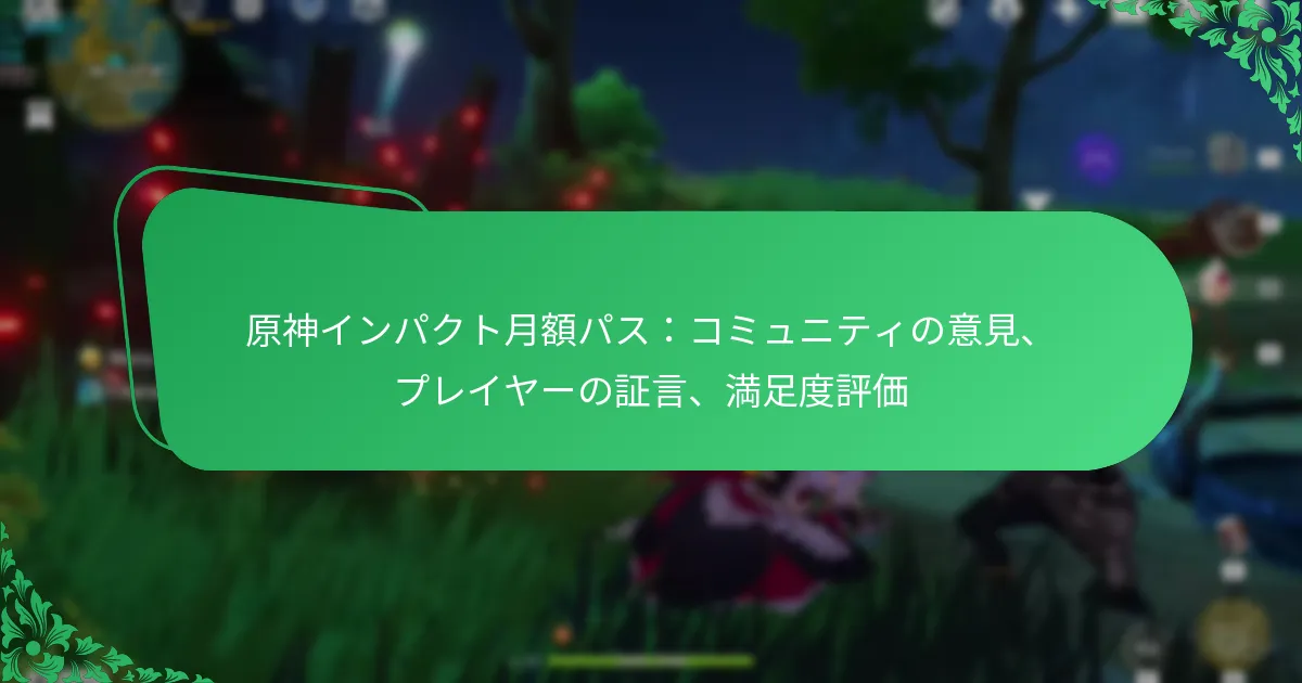 原神の月額パスはコミュニティ内でさまざまな意見を引き起こしており、多くのプレイヤーがその価値を認める一方で、他のプレイヤーはその欠点について懸念を示しています。全体的に満足度は主にポジティブですが、個々の体験は大きく異なることがあります。プレイヤーの証言は、報酬への感謝とゲーム内の進行や公平性に関する懸念が混在していることを反映しています。 原神の月額パスに対するコミュニティの意見は? 原神の月額パスはコミュニティからさまざまな意見を集めており、多くのプレイヤーがその価値を評価する一方で、他のプレイヤーはその欠点について懸念を表明しています。全体的に満足度はポジティブな傾向がありますが、個々の体験は大きく異なります。 価値に関するプレイヤーからのポジティブなフィードバック 多くのプレイヤーは、原神の月額パスをゲーム体験を向上させるコストパフォーマンスの良い方法として強調しています。手頃な月額料金で、プレイヤーは安定したゲーム内通貨の流入と独占的な報酬を受け取り、進行を大幅に促進することができます。 証言では、パスが時間をかけて一貫した価値を提供する能力が強調されることがよくあります。プレイヤーは、受け取った報酬が初期投資を上回ることが多く、定期的に利用するユーザーの間で人気の選択肢となっています。 プレイヤーは自動的に報酬を受け取る便利さを評価しています。 多くのプレイヤーが、パスがゲームへの関与を高めると感じています。 ポジティブな体験はフォーラムやソーシャルメディアで頻繁に共有されています。 潜在的な欠点を強調するネガティブなフィードバック ポジティブなフィードバックがある一方で、一部のプレイヤーは原神の月額パスについて懸念を表明しています。一般的な批判は、報酬がカジュアルプレイヤーにとって十分に魅力的でない可能性があるということです。カジュアルプレイヤーは、十分に頻繁にプレイしないため、利点を最大限に活用できないかもしれません。 さらに、一部のプレイヤーは、パスが毎日ログインするプレッシャーを生み出すと感じており、これがゲームの楽しみを損なう可能性があります。このプレッシャーは、よりリラックスしたゲームスタイルを好む人々にとって、燃え尽き症候群につながることがあります。 報酬を最大化するために毎日の関与が必要であることへの懸念。 一部のプレイヤーは、無料プレイオプションと比較した全体的な価値に疑問を持っています。 ネガティブな体験はソーシャルメディアプラットフォームで時折増幅されます。 他のゲーム内購入との比較意見 月額パスを他のゲーム内購入と比較すると、プレイヤーはしばしばその価値とアクセスのユニークな組み合わせを指摘します。一度限りの購入とは異なり、パスは長期間にわたってゲームプレイを向上させる継続的な報酬を提供します。 しかし、一部のプレイヤーは、キャラクターバナーや武器パックなどの他の購入がより即時の満足感を提供する可能性があると主張しています。この視点は、原神での資金の使い方に関する最良の戦略についての議論を引き起こすことがよくあります。 多くのプレイヤーは、一貫した報酬のために月額パスを好みます。 他のプレイヤーは、ゲームプレイに対する即時の影響のために一度限りの購入を好みます。 比較の議論はコミュニティフォーラムやソーシャルメディアで頻繁に行われます。 時間の経過に伴うコミュニティの議論のトレンド 原神の月額パスに関するコミュニティの議論は進化しており、プレイヤーの感情やゲームのアップデートの変化を反映しています。最初は、パスは温かく迎えられ、多くのプレイヤーが新機能に投資することを楽しみにしていました。 しかし、時間が経つにつれて、議論は報酬とプレイヤーの関与のバランスに関するより批判的な視点を含むようにシフトしました。ゲームが進化し続けるにつれて、パスに関する意見も変化しています。 初期の熱意は、より微妙な議論に変わりました。